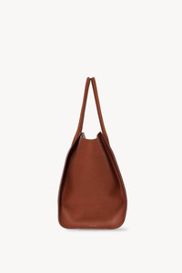 Softly structured tote bag in polished saddle leather with tubular handles, gusseted side panels, and top zipper closure. More information - 17 x 6.3 x 12 in. - 100% Calfskin Leather - Lined in 100% Cotton - Made in France - Style: W1904L72ACRS