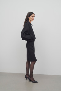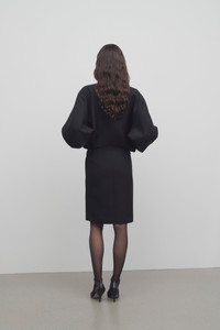Outerwear-inspired mid-length dress in crisp double-faced wool with bomber-style top, pencil skirt, dual zip closure, and side slash chest pockets. More information - 100% Wool - Lined in 100% Silk Habotai - Made in Italy - Style: 8315W3161BLK