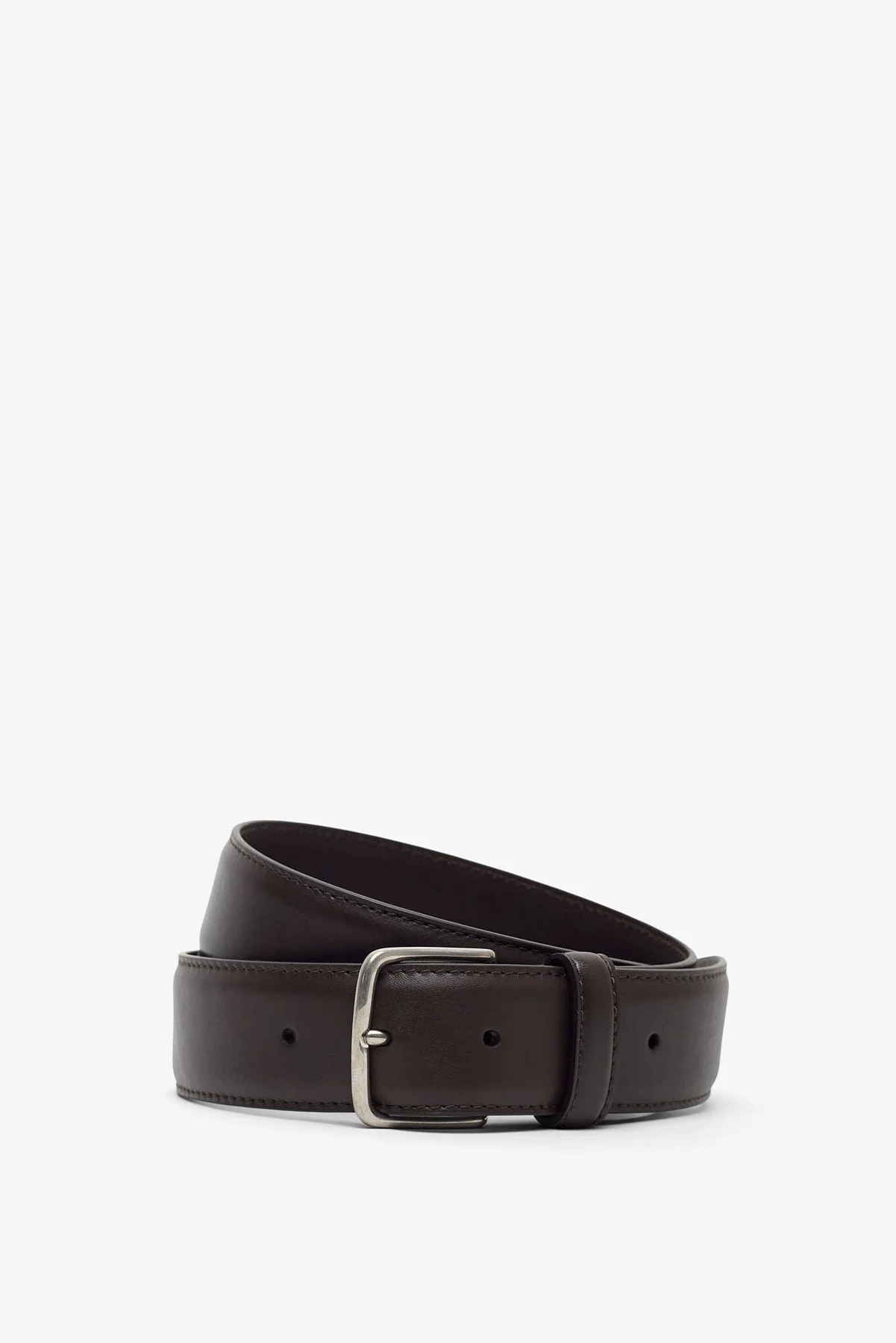 Brown leather belt from The Row. The Classic belt is made of sleek calfskin leather with silver metal buckle and fixed loop. - Width: 35mm - Made in Italy Product Code: W1846-L60-DBAS