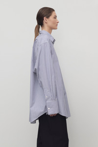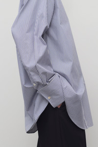 Classic button-up shirt in Japanese striped poplin with front patch pocket, elongated cuffs, and exposed front placket with mother-of-pearl buttons. More information - 100% Cotton - Made in Italy - Style: 10204W4267WBL
