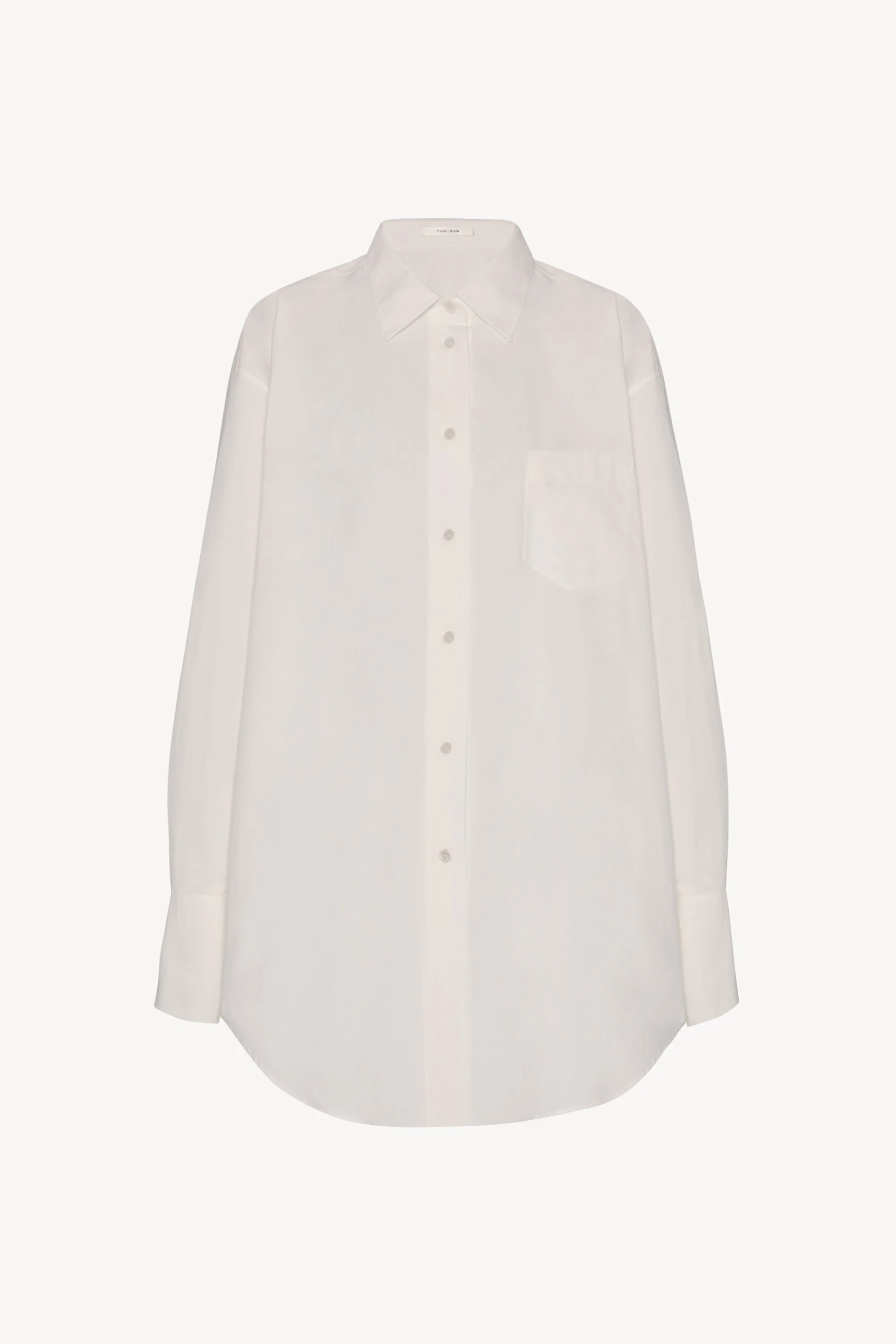 Classic button-up shirt in sanded cotton poplin with front patch pocket, elongated cuffs, and exposed front placket with mother-of-pearl buttons. More information - 100% Cotton - Made in Italy - Style: 10204W4075WHT