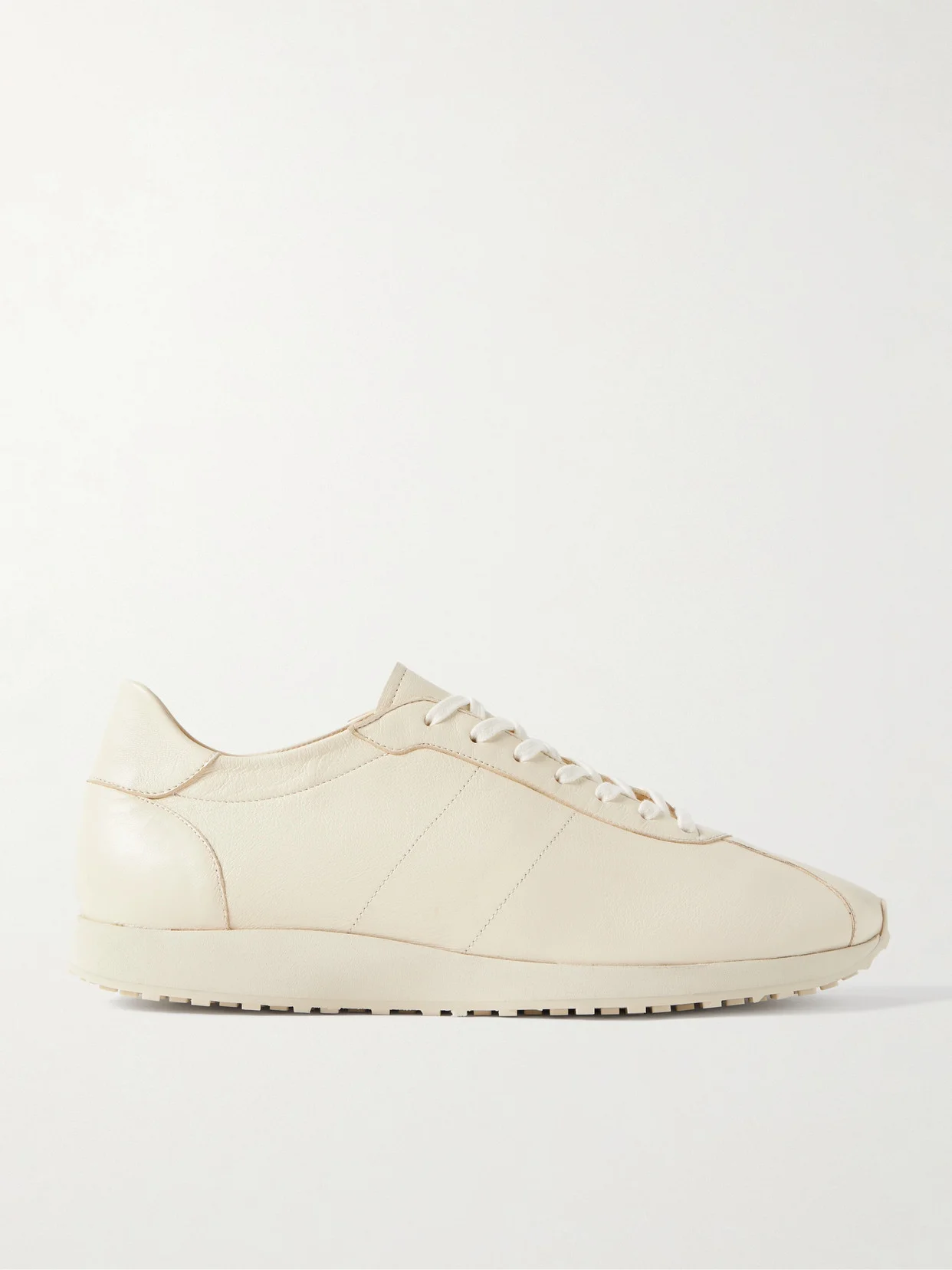 The Row has an uncanny ability to create classic yet cool wardrobe staples that last through the seasons. Made from smooth leather, these 'Mica' sneakers have gently squared toes and subtle quilting at the sides. The tonal ivory colorway ensures maximum versatility.
