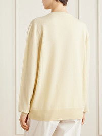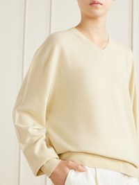 The Row's 'Miegia' sweater has been meticulously knitted from super soft cashmere in butter yellow. Designed with a V-neckline, it has a slightly loose fit with ribbed trims for subtle definition. Wear yours with jeans, skirts or relaxed tailoring. Size & Fit - Fits true to size, take your normal size - Designed for a slightly loose fit - Mid-weight knit - Model is 177cm/ 5'10" and is wearing a size S Model measurements: - Bust: 75cm/ 30" - Waist: 60cm/ 24" - Hip: 91cm/ 36" Details & Care - Material: 100% cashmere - Care instructions: dry clean - Made in Italy - Colour: yellow