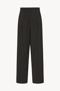 High-rise tailored trouser in lightweight virgin wool and mohair with straight leg, stitched front pleats, and slanted side pockets. More information - 84% Wool, 16% Mohair - Lined in 100% Silk - Made in Italy - Style: 10205W4083DBR