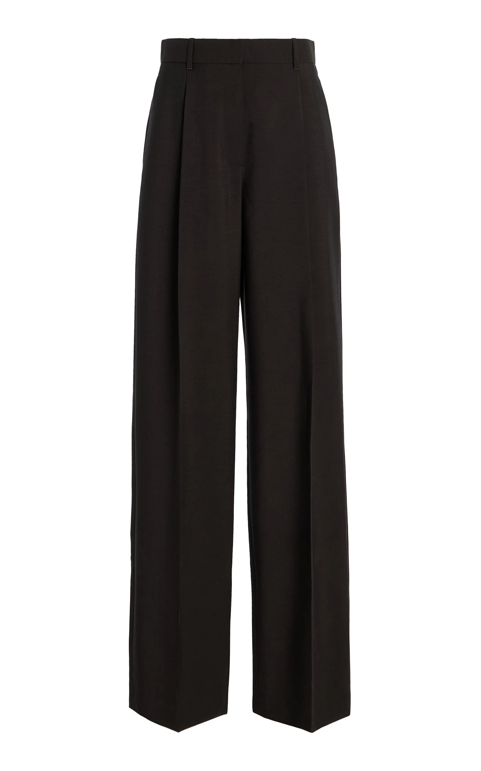 With a focus on exceptional fabrics, impeccable details and uncompromising quality, The Row explores the strength of simplistic shapes, resulting in timeless staples with subtle irreverence. The 'Mikkela' pants have a classic straight-leg cut made from a suiting fabric using wool and mohair. The high-rise waist has pleats that fall to neatly pressed creases. PRODUCT DETAILS - Fall '25 - Zip fastening - Composition: 84% sheep virgin wool, 16% goat mohair; Lining: 100% silk - Dry clean - Made in Italy SIZE & FIT - Our model is wearing a size US 2 - Model is 5'11" with a 30" bust, 24" waist, and 34" hip - Designed for a slim fit