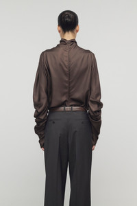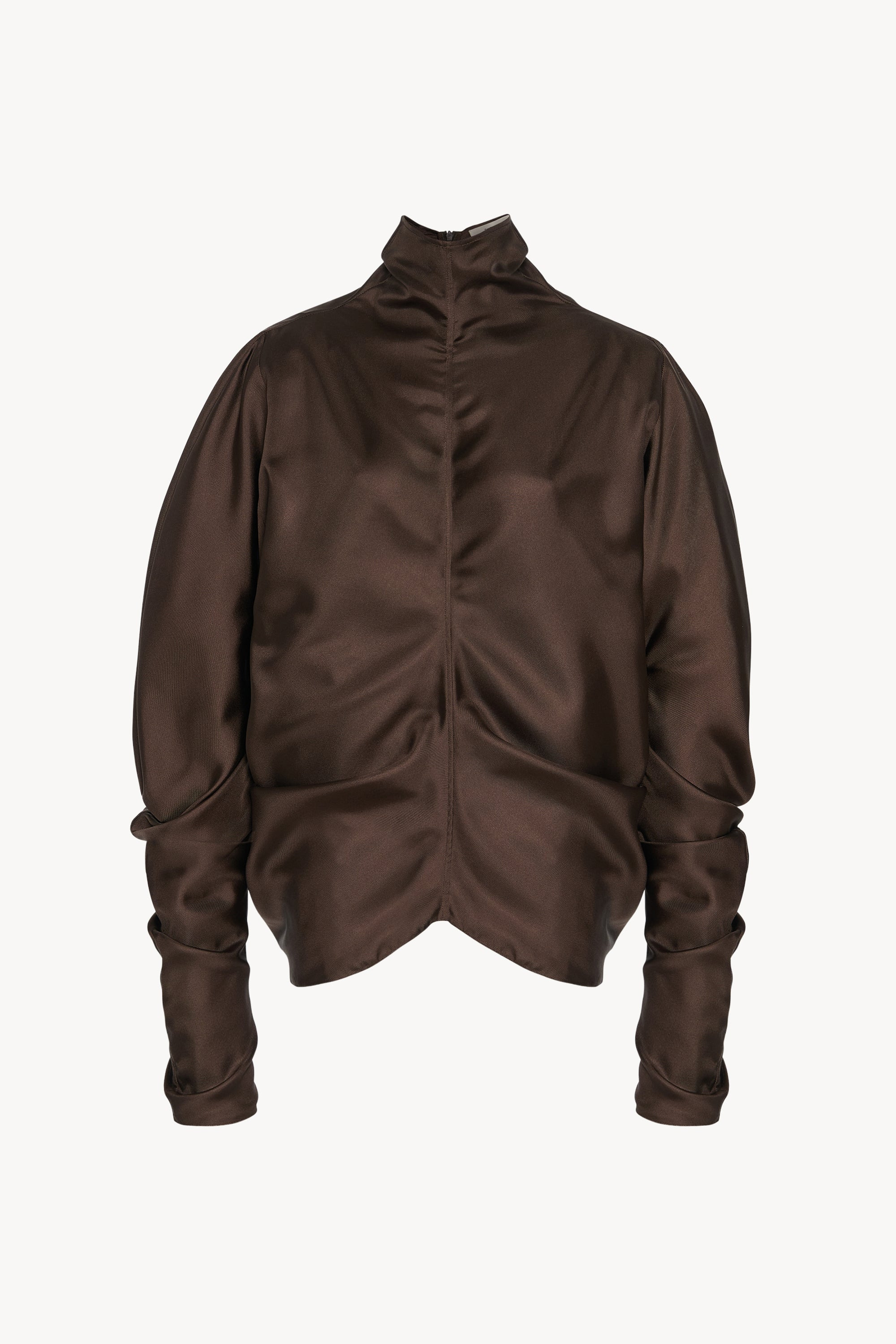 Sculptural long-sleeved top in crisp, lightweight silk with high neckline, gathered draping, and concealed back zipper closure. More information - 100% Silk - Made in Italy - Style: 10206W4178TAU