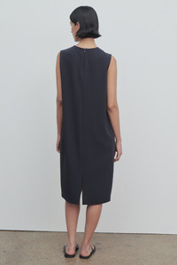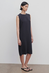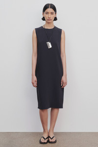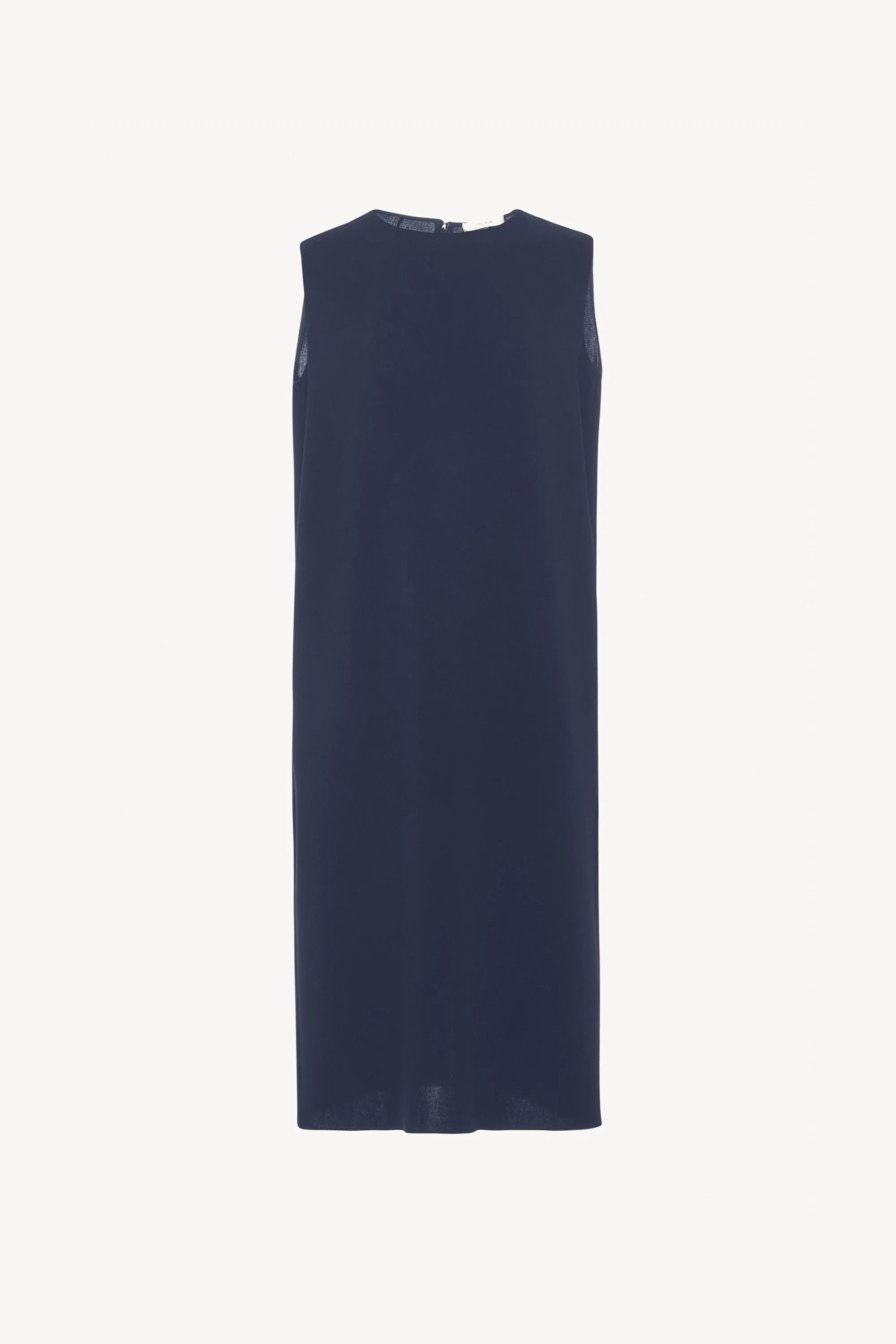 The Row Essentials sleeveless dress in fluid cady with straight silhouette. More information - - Fully lined in silk - - Back zip closure - - 69% triacetate, 31% polyester - - Made in Italy - - Style: 5575W1968NVY
