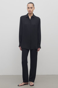 Minimal trouser in fluid stretch cady with cropped straight leg and concealed zipper closure. More information - 97% Viscose, 3% Elastane - Lined in 100% Silk - Made in Italy - Style: 9018W1275BLK