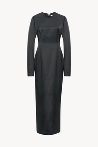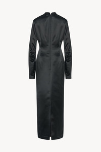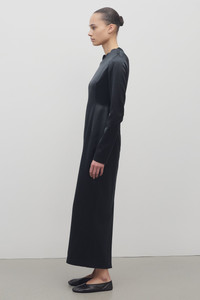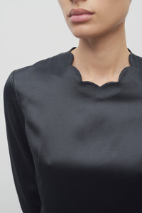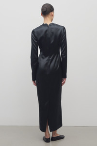 Ankle-length column dress in heavyweight silk satin with scalloped neckline, center back hem vent, and fitted silhouette. More information - 66% Silk, 34% Viscose - Lined in 100% Silk - Made in Italy - Style: 9020W3852FBK