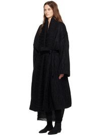 Stretch silk crepe coat. Raised jacquard pattern throughout. · Shawl lapel · Open front · Detachable self-tie belt · Seam pockets · Dropped shoulders · Full silk habotai lining Supplier color: Black Body: 99% silk, 1% elastane. Lining: 100% silk. Made in Italy 251359F059002