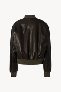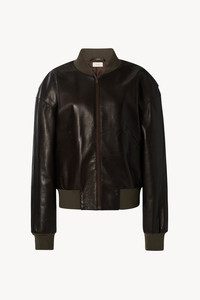 Classic bomber jacket in supple calfskin leather with slant welt pockets, ribbed collar, cuffs, and hem, and front zip closure. More information - 100% Calfskin Leather - Lined in 100% Silk - Made in Italy - Style: 10495L644CFF