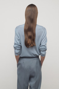 Long-sleeved mock neck top in ultrafine merino wool with boxy fit and ribbed neckline, cuffs, and hem. Characterized by a fluid hand and matte, slightly textured surface, this lightweight knit offers timeless versatility and comfort. More information - 100% Wool - Made in Italy - Style: 10681Y976AZG