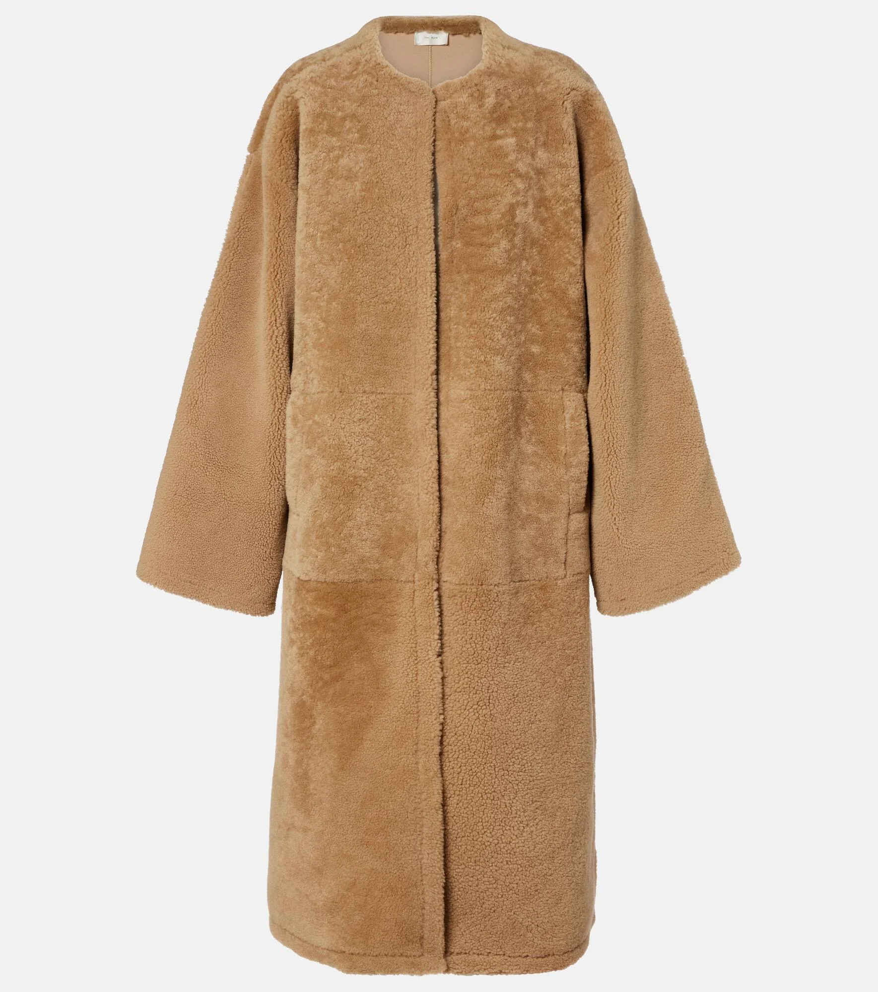 A deep affection for refined and timeless fashion influences The Row's dedication to craftsmanship and quality. This Narol open-front coat is crafted from soft shearling and comes in a straight collarless silhouette. Product Details - Material: 100% shearling - Care instructions: specialist clean - Made in Italy - Designer color name: Beige - Item color: beige - Pockets: side slit pockets - Lining: 100% lamb leather - Item number: P01115425 Size & Fit - True to size - Dropped shoulders - Oversized - Non-stretchy fabric - Height of model is 175cm-69" and wears a size US 4