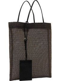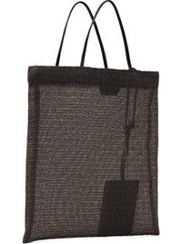 Mesh tote. · Fixed leather carry handles · Detachable logo-embossed card holder at strap · H11.5" x W10" Supplier color: Blue Textile. Made in Italy 252359F049031