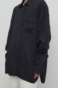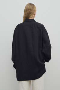 Relaxed button-up shirt in soft linen denim with front patch pocket, slim back yoke with side pleats, and exposed front placket with mother-of-pearl buttons. More information - 100% Linen - Made in Japan - Style: 8740W3654BLK