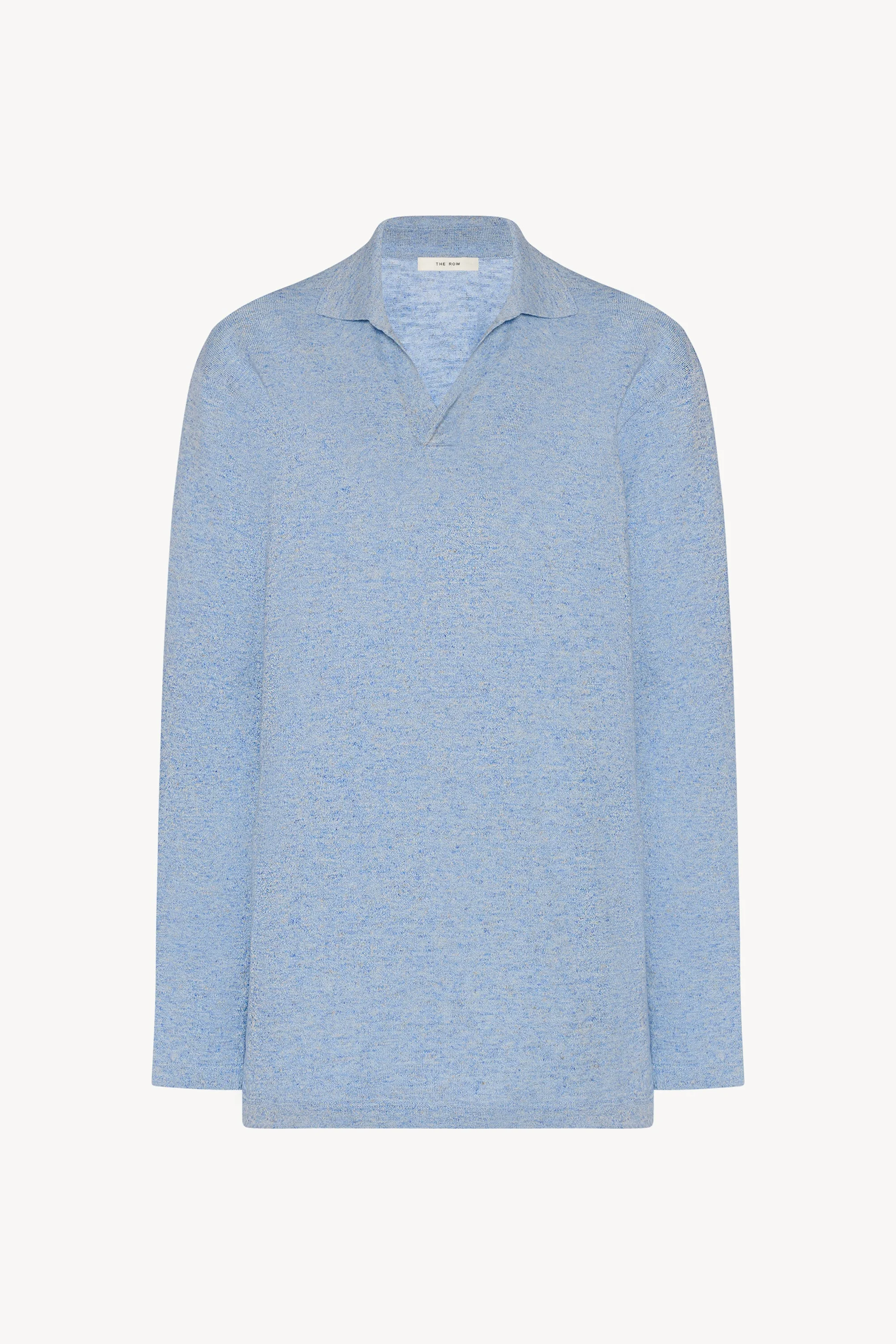 Long-sleeved polo top in lightly textured melange cotton with oversized fit, buttonless front tab, and clean edge finish with covered stitch detailing. Crafted from organic cotton and natural linen, the fabric offers a lightweight yet structured hand and casually refined feel. More information - 88% Cotton, 12% Linen - Made in Italy - Style: 10707Y971IBU