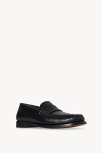 Classic moccasin in smooth calfskin leather with seamless construction, hand-stitched detailing, and stacked heel. More information - 1 in. Heel - 100% Calfskin Leather - Leather sole - Made in Italy - Style: F1553L600BLK