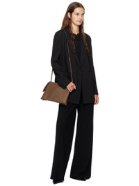 Grained calfskin shoulder bag in brown. · Adjustable crossbody strap · Logo embossed at face · Zip closure · Two-compartment interior · Suede lining · H8.75" x W11" x D1" Supplier color: Dark olive