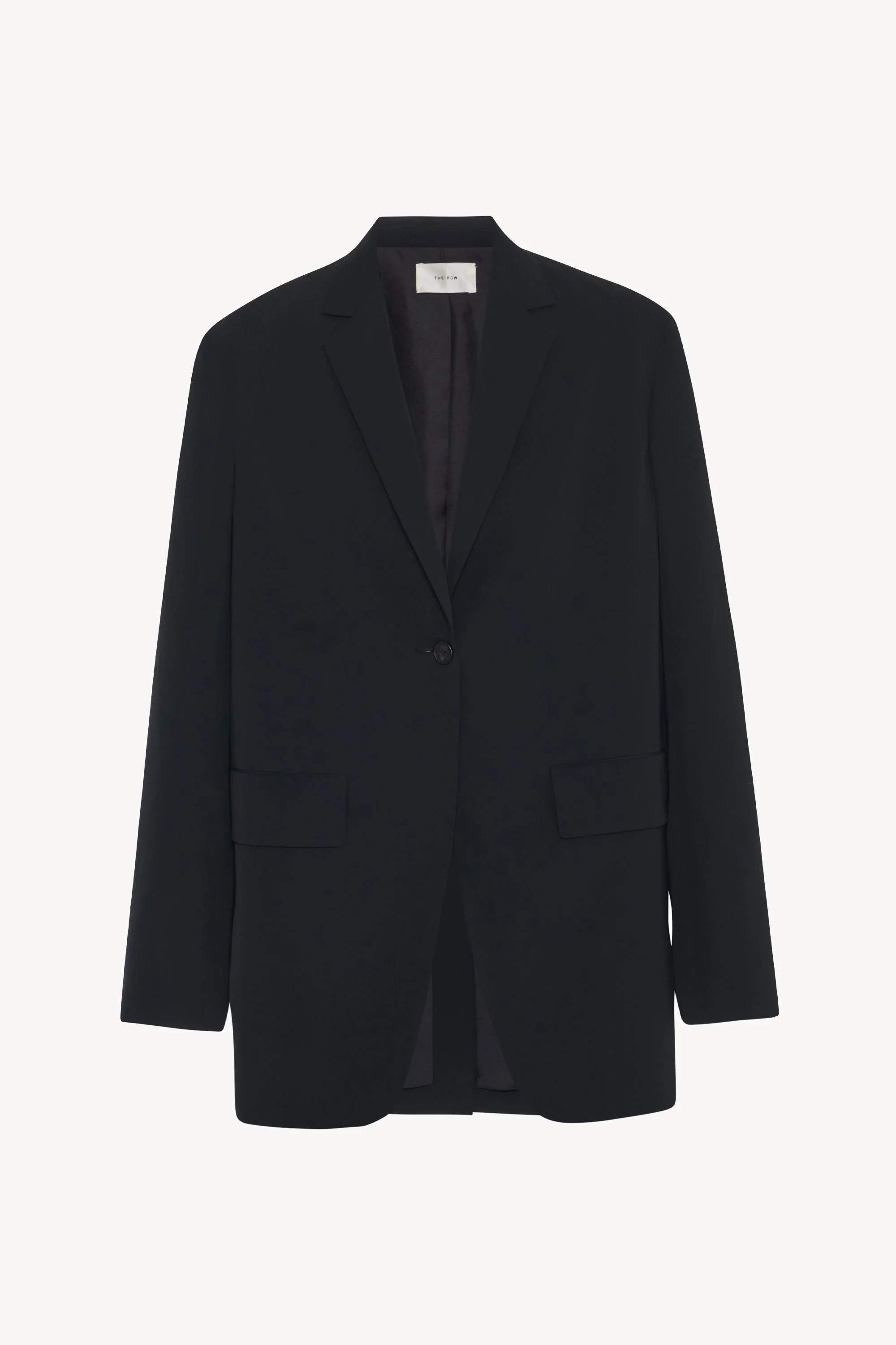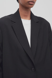 Oversized single-breasted tailored jacket in lightweight viscose and virgin wool with hand-pick stitched notch lapel, front flap pockets and back vent.More information - - Model is wearing size S - - Horn button closure - - 60% viscose, 40% virgin wool - - 100% Silk Lining - - Made in USA - - Style: 5225W1973BLK