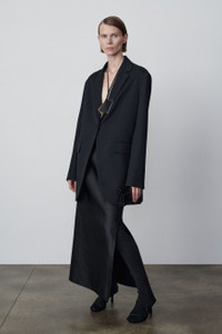 Oversized single-breasted tailored jacket in structured wool with hand-pick stitched notch lapel, front flap pockets and back vent. More information - Horn button closure - 100% Virgin wool - Made in USA - Style: 5225W2164BLK