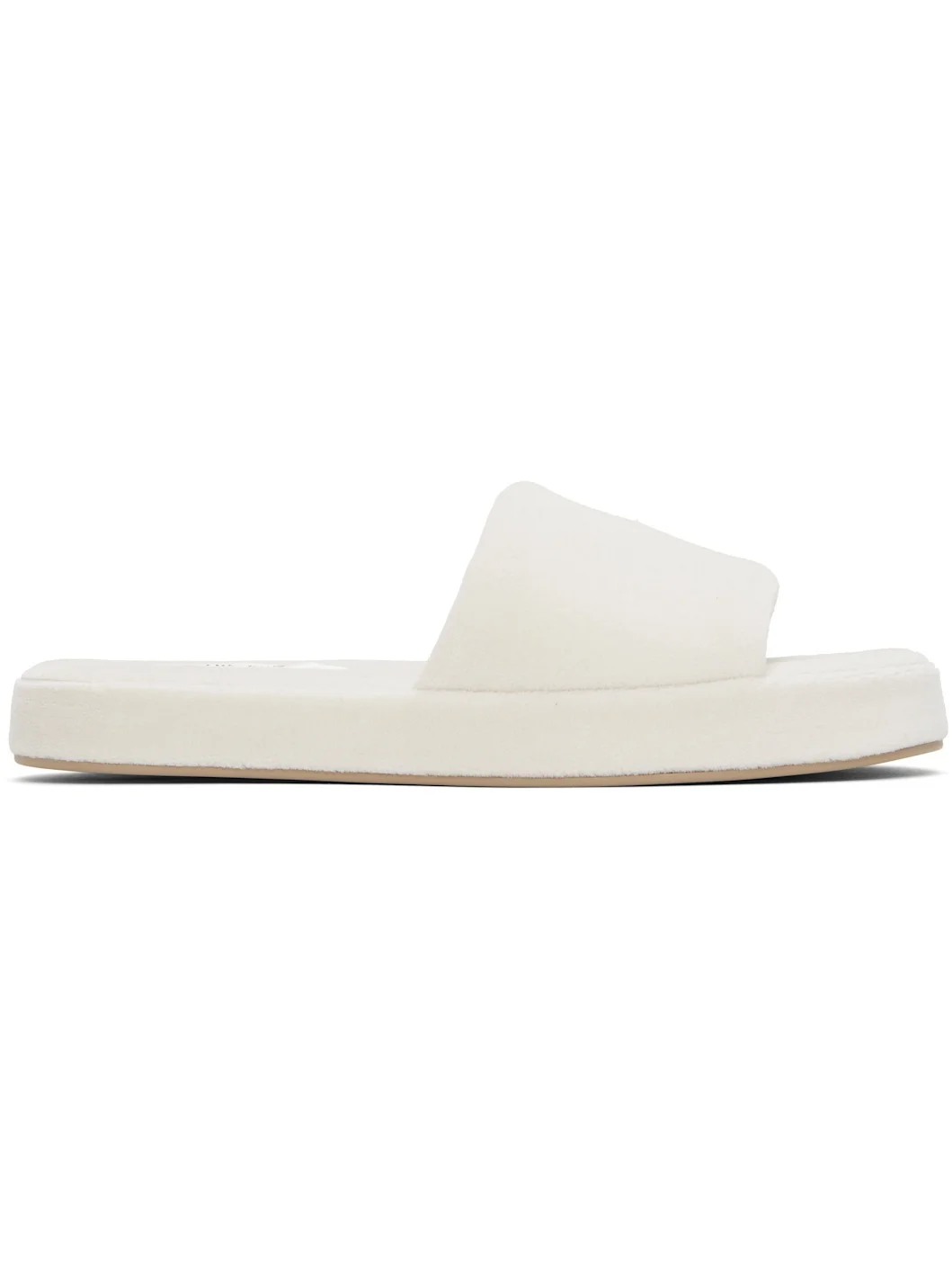 Velvet slippers in off-white. · Open toe · Logo patch at padded footbed · Rubber sole Supplier color: Sage tint Upper: textile. Sole: rubber. Made in Italy 251359F124008