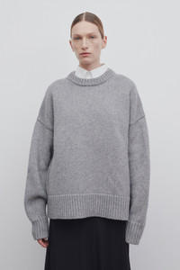 The Row Essentials crewneck sweater in multi-stitch, heavyweight wool and cashmere knit with ribbed neckline, cuffs and hem. More information - 65% Wool, 35% Cashmere - Made in Italy - Style: 325Y184GYM