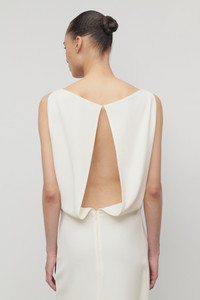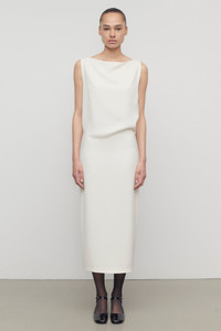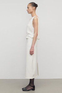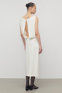 Calf-length column dress in smooth heavyweight silk with open back slit, center back hem vent, and concealed back zip closure with hook & eye at neckline. More information - 100% Silk - Lined in 91% Silk, 9% Elastane - Made in Italy - Style: 10219W2214WHT