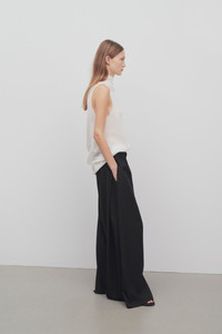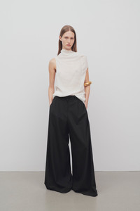 Mid-rise tailored pant in fine wool gabardine with wide leg, voluminous side pleats, and side seam pockets. More information - 100% Wool - Silk Lining - Made in Italy - Style: 8136W3082BLK