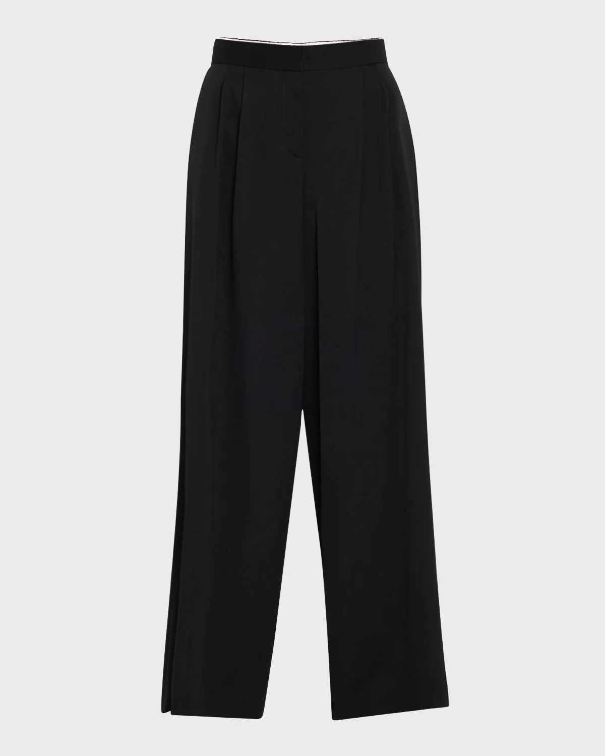 THE ROW "Paras" wideleg pants featuring pleating at the front Midrise; sits high on hip Button/zip fly Side slip pockets Full length Relaxed fit Wool Lining: Silk Made in Italy