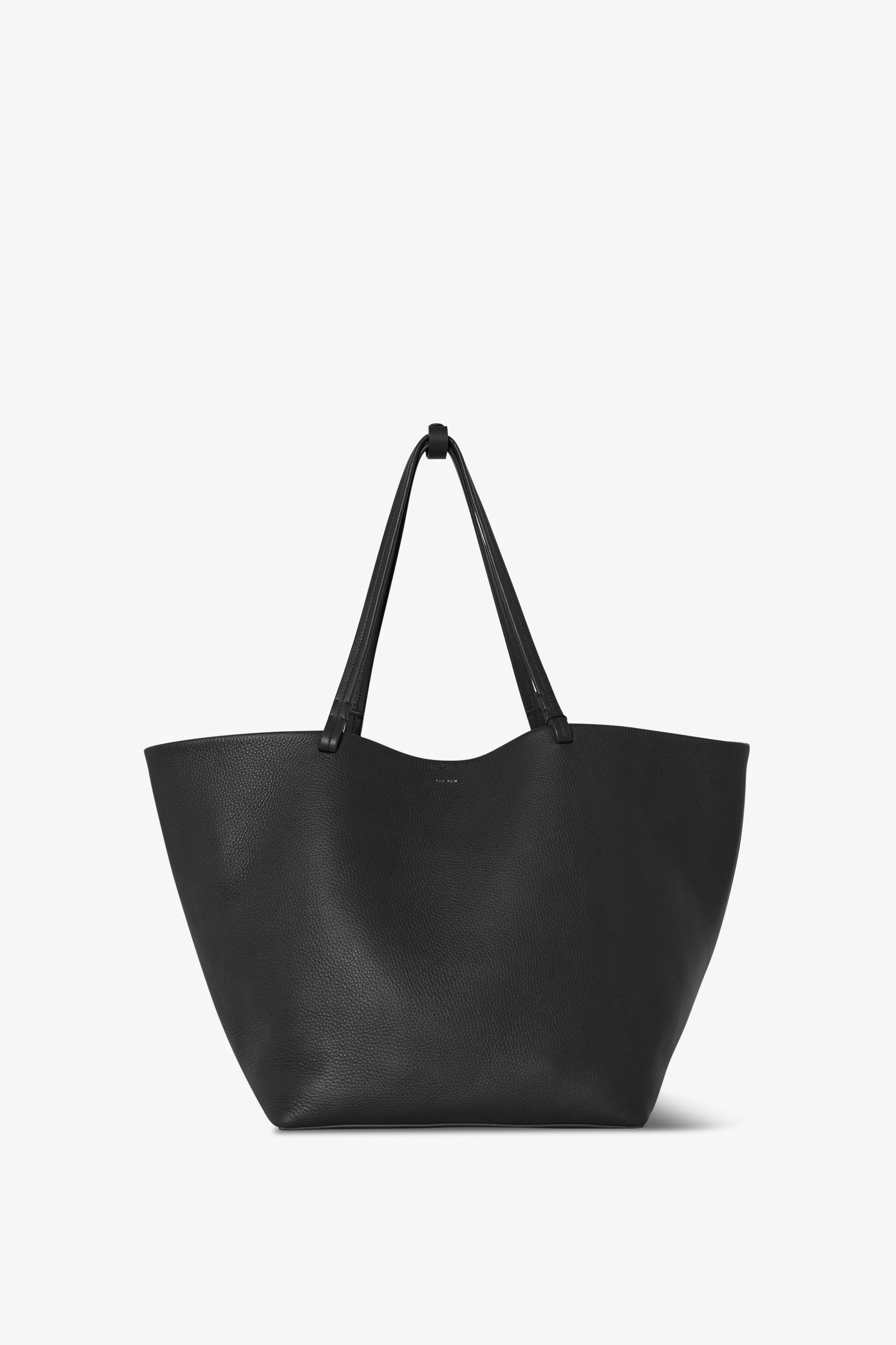 Classic tote bag in grained calfskin leather with interior toggle closure, flat handles and interior wristlet with adjustable strap. More information - 14 x 24 x 12 in. - 100% Calfskin Leather - Lined in 100% Suede - Made in Italy - Style: W1201L129BLPL