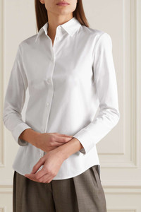 EDITORS'NOTES When looking for timeless, beautifully made staples, The Row should be your first stop. This 'Petra' shirt is made from cotton-poplin and adorned with a row of glossy mother-of-pearl buttons. Wear it with tailoring or straight-leg jeans. SIZE & FIT - Fits true to size, however those who are between sizes should take the smaller size - Designed for a slim fit - Lightweight, non-stretchy fabric - Model is 177cm/ 5'10" and is wearing a US 2 DETAILS & CARE - White cotton-poplin - Button fastenings through front - 97% cotton, 3% elastane - Dry clean - Mother-of-pearl: Australia