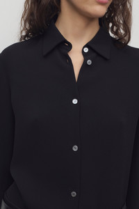 Fitted button-up shirt in crisp, lightweight silk with cropped sleeves, slim back yoke, and exposed front placket with mother-of-pearl buttons. More information - 100% Silk - Made in Italy - Style: 1025W3487BLK