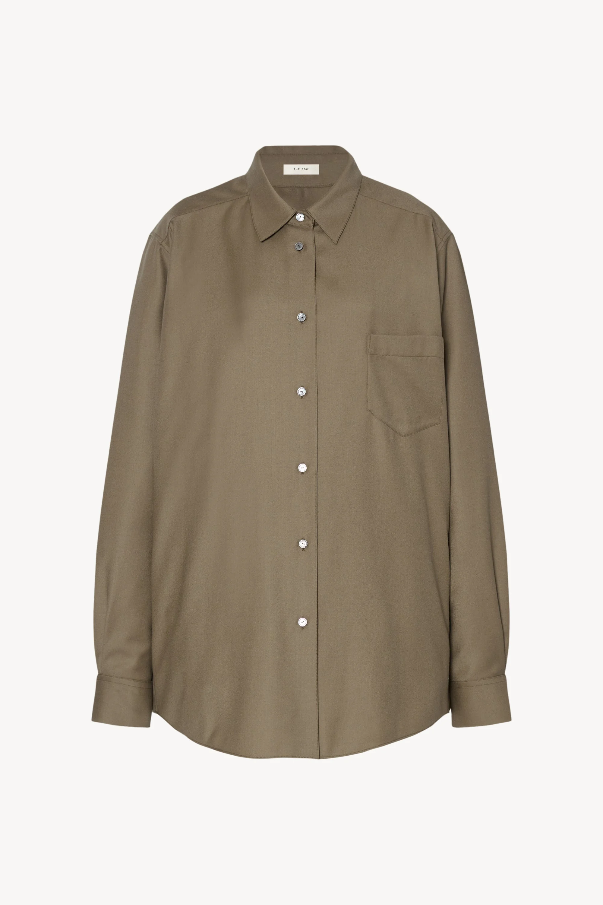 Oversized button-up shirt in virgin wool flannel with front patch pocket and exposed front placket with mother-of-pearl buttons. More information - 100% Wool - Lined in 100% Silk - Made in Italy - Style: 10275W4084MYB