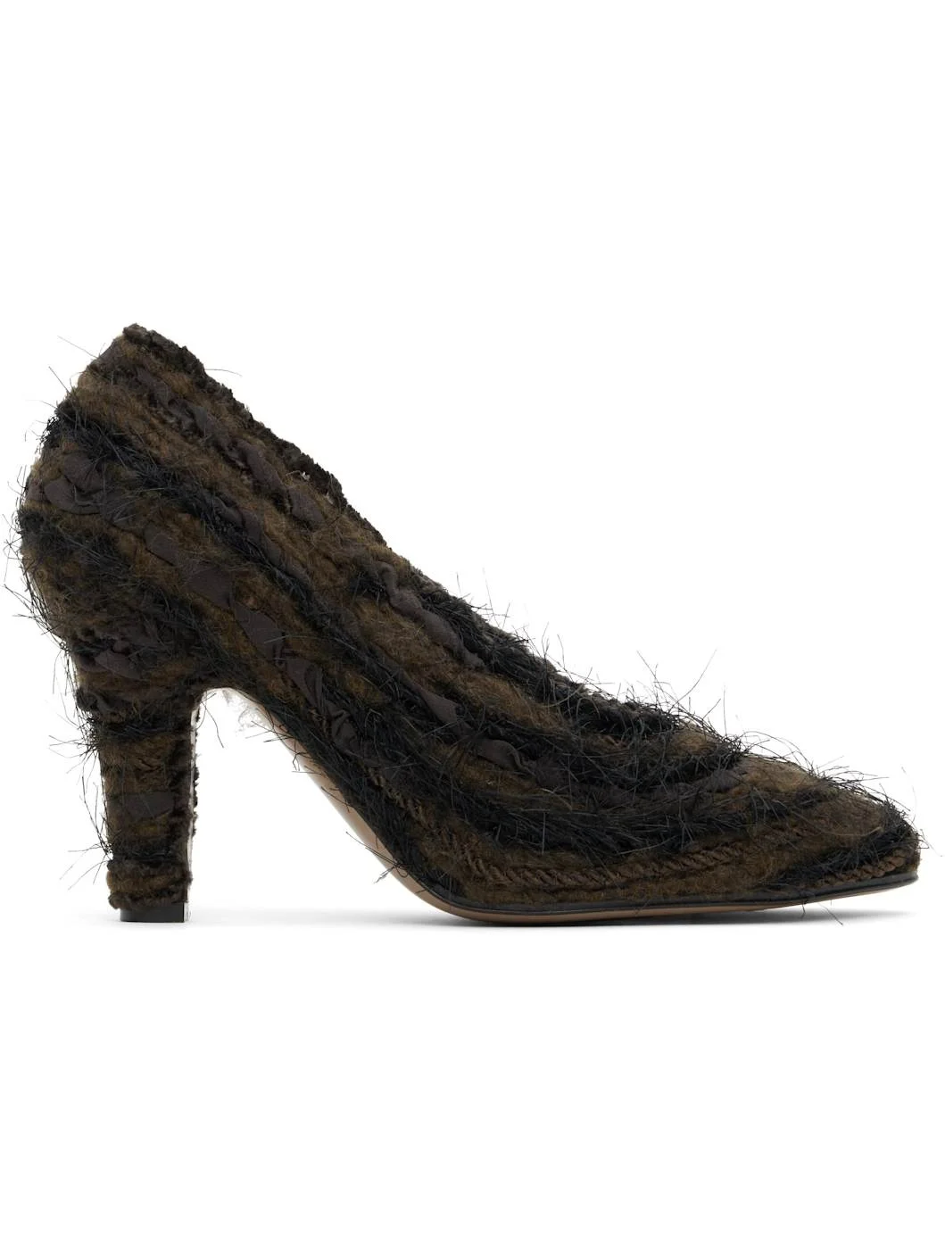 Twisted gauze and braided shag-knit cashmere-blend heels in tones of brown. · Pointed toe · Buffed leather lining · Stiletto heel with rubber injection · Leather sole · Heel: H3.5" Supplier color: Lacquer brown Upper: textile. Sole: leather, rubber. Made in Italy 251359F122000