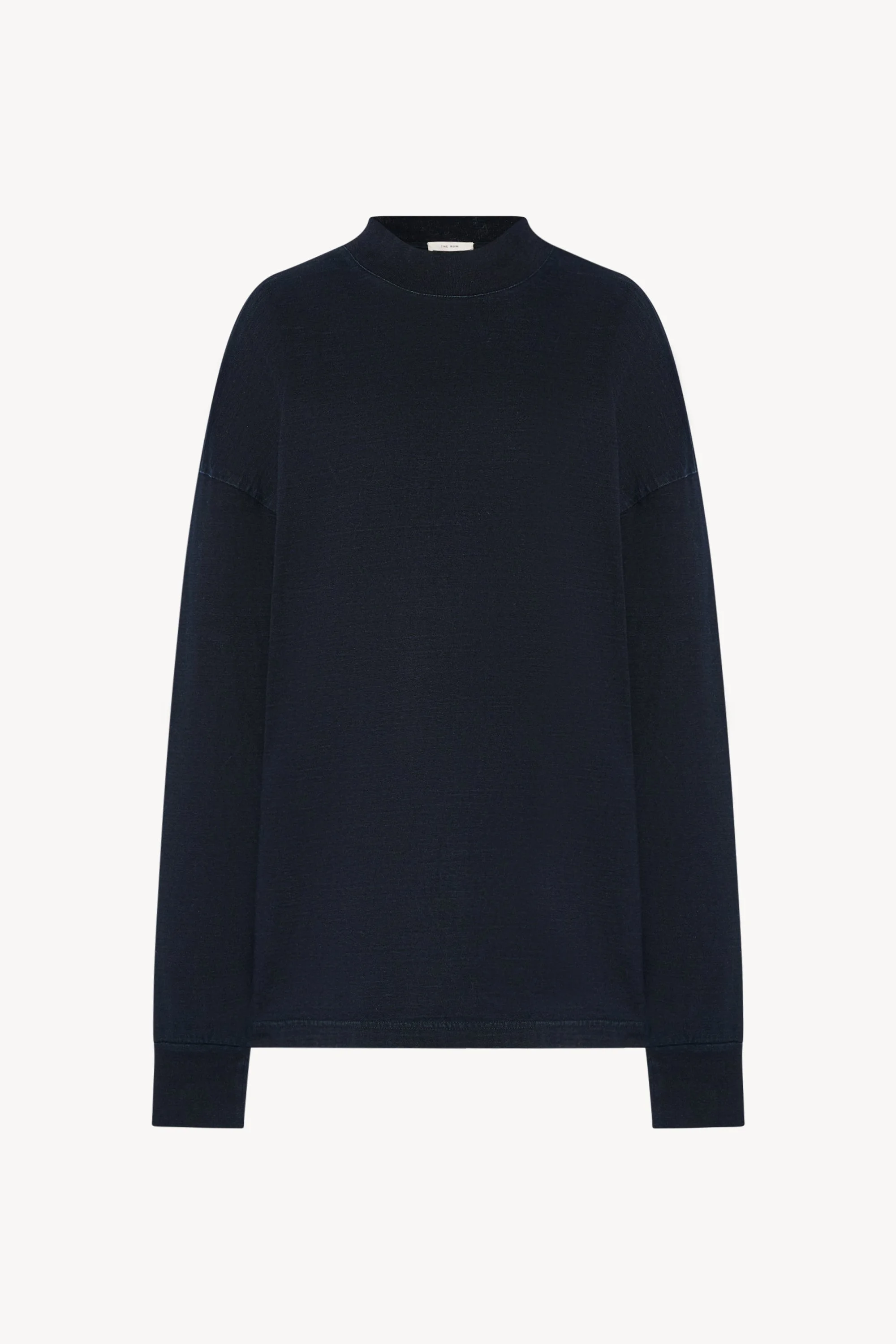 Long-sleeved mockneck top in indigo-dyed cotton jersey with oversized fit, ribbed cuffs, and signature center back detail. More information - 100% Cotton - Made in Japan - Style: 7970K693IND