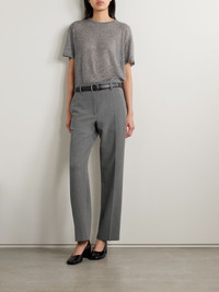 The Row's 'Relian' pants are designed with precise attention to cut and details, ensuring they'll remain a classic in your wardrobe for seasons to come. They're tailored from wool-blend and have cropped straight legs. Wear yours with an oversized shirt and classic loafers. Size & Fit - Fits true to size, take your normal size - High-rise, designed for a straight-leg fit - Cropped length - Mid-weight, non-stretchy fabric - Model is 180cm/ 5'11" and is wearing a US 2 Model measurements: - Bust: 79cm/ 31" - Waist: 61cm/ 24" - Hip: 89cm/ 35" Details & Care - Gray melange wool-blend - Concealed button, hook and zip fastening at front - 96% virgin wool, 4% elastane; lining: 100% silk