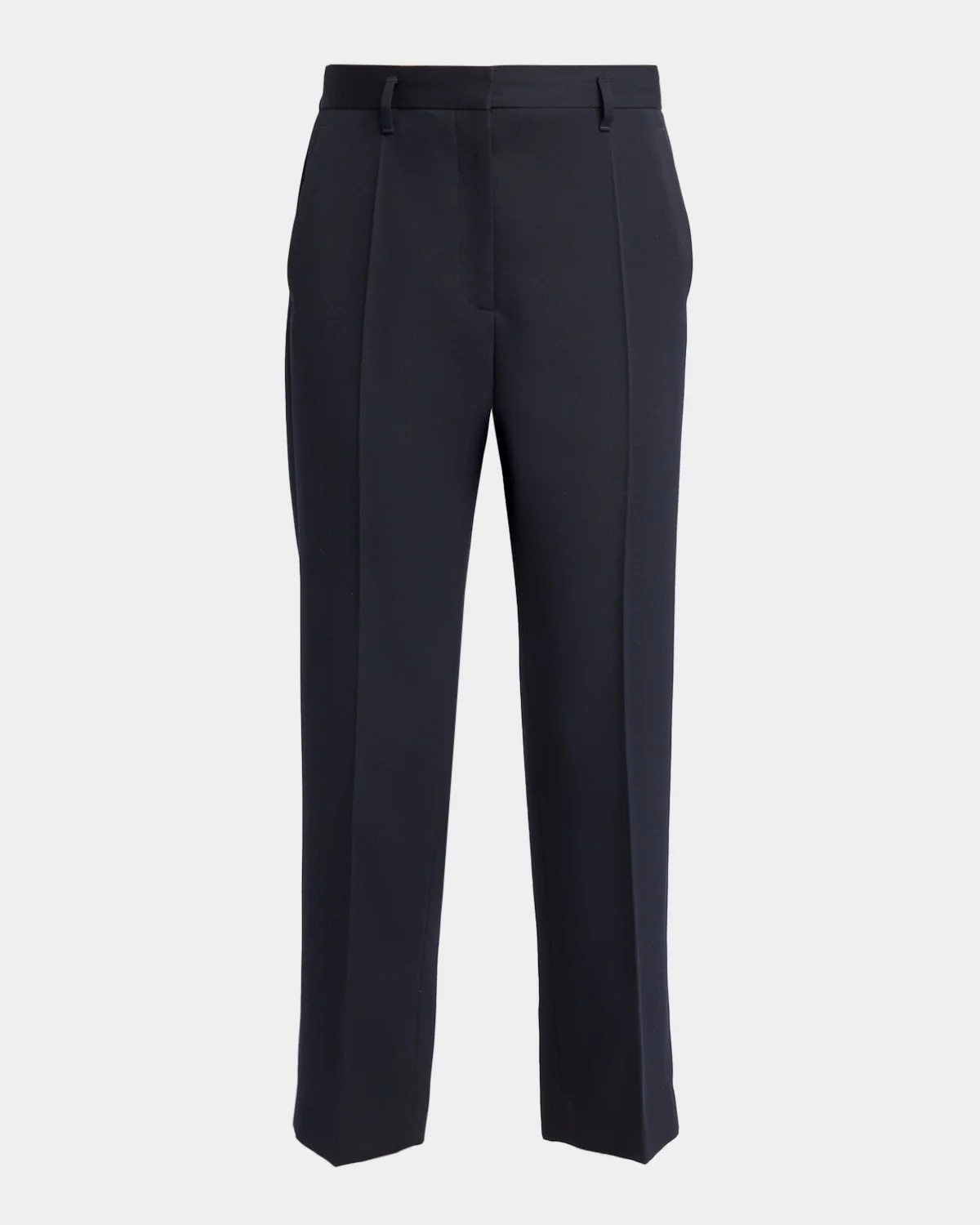 THE ROW "Relian" pants are tailored in a wool crepe with pressed creases Mid rise sits high on hip Side slip pockets Back buttonwelt pockets Straight legs Ankle length Hook/zip fly; belt loops Virgin wool Lining: Silk Made in Italy