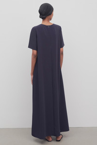 The Row Essentials oversized short sleeve dress in fluid double-faced cady with a-line silhouette.More information - - 69% Triacetate, 31% Polyester - - Lined in 100% Silk - - Made in Italy - - Style: 5576W1968NVY