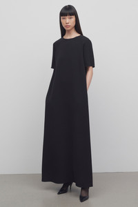 The Row Essentials oversized short sleeve dress in fluid double-faced cady with a-line silhouette.More information - - 69% Triacetate, 31% Polyester - - Lined in 100% Silk - - Made in Italy - - Style: 5576W1968BLK
