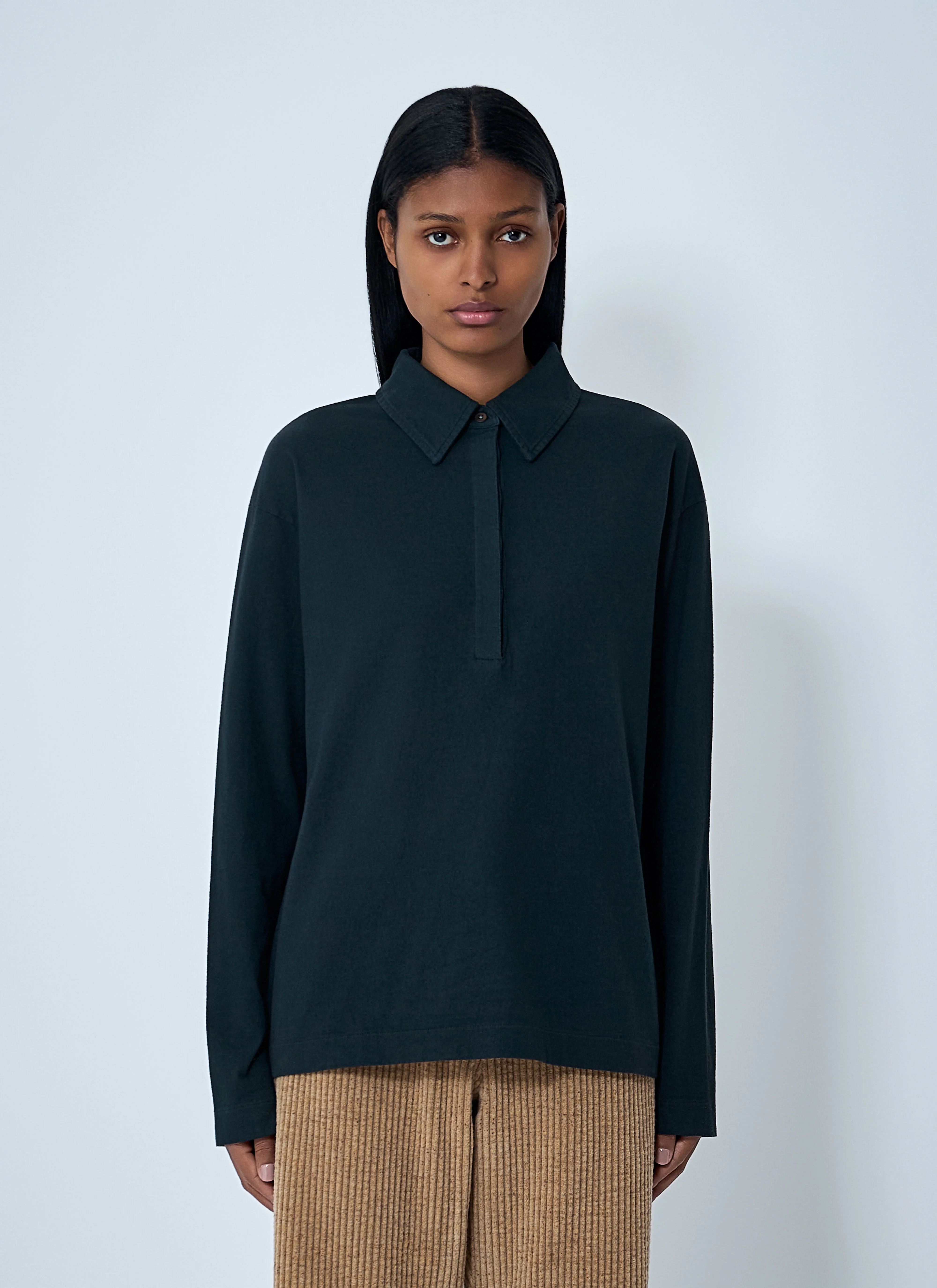 Long sleeve polo shirt in cotton jersey. - Spread collar - Front button placket - Long sleeves - Straight hem - 100% Cotton. Dry clean - Color: Black - Code: 8752 K526 BLK