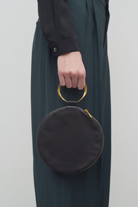 Circular pouch in softly polished nappa leather with metal bracelet handle and zipper closure. More information - 7.5 in. diameter - 100% Lambskin Leather - Lined in 100% Leather - Made in Italy - Style: W1794L148BAG