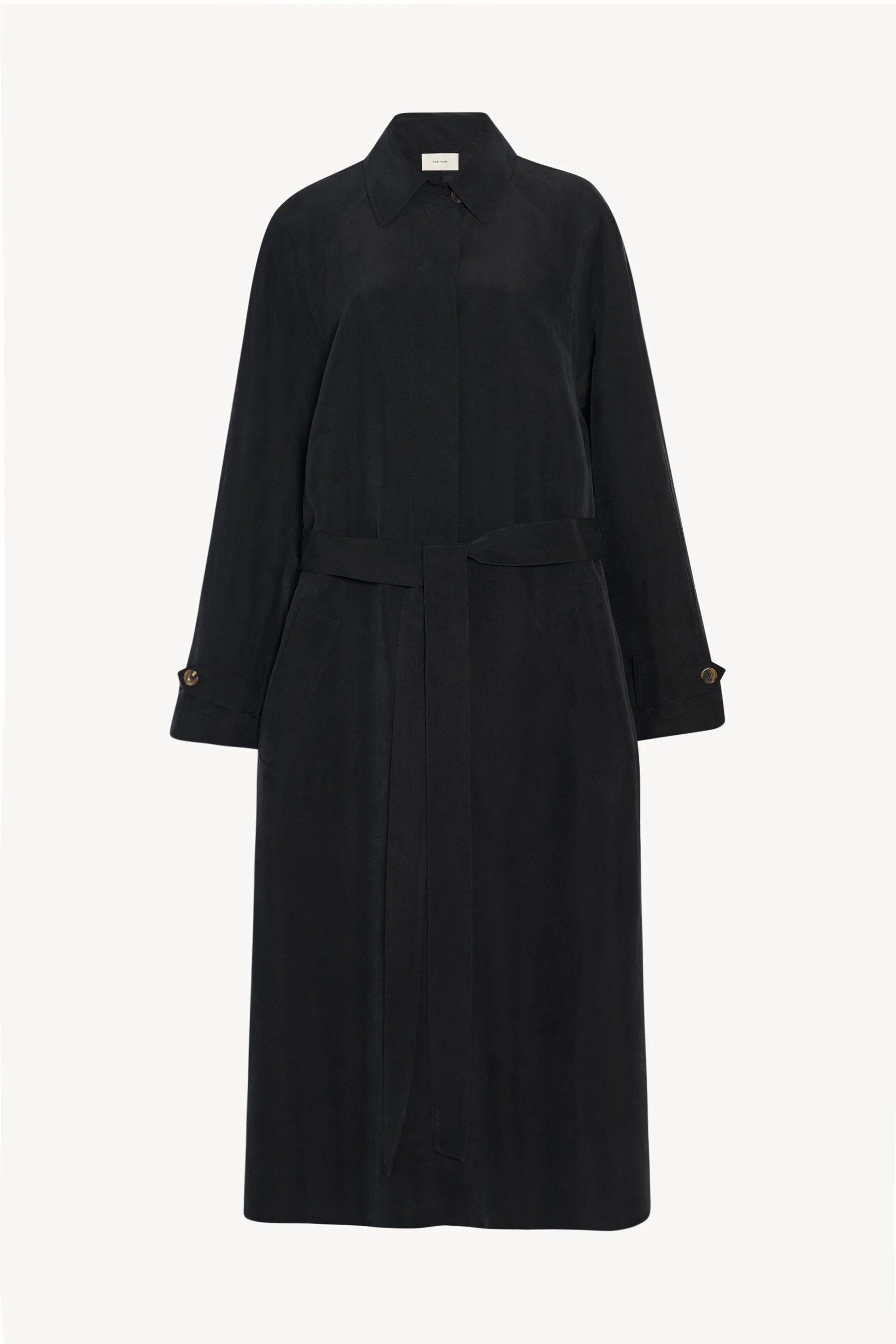 Ankle-length trench coat in natural silk shantung with self belt, front welt pockets, and concealed front placket with horn button closure. More information - 100% Silk - Made in Italy - Style: 9039W3952BLK