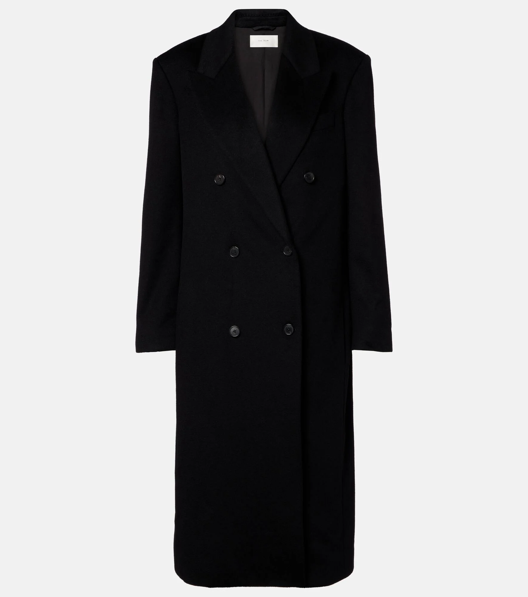 A deep affection for refined and timeless fashion influences The Row's dedication to craftsmanship and quality. Italian-made from medium-weight cashmere, the Sandes coat is shaped into a double-breasted silhouette. Product Details - Material: 100% cashmere - Care instructions: dry clean - Made in Italy - Designer color name: Black - Item color: black - Lining: 100% silk - Closure: double-breasted (six buttons) - Pockets: welt pocket, side slit pockets - Vent: single - Item number: P01115447 Size & Fit - True to size - Shoulder pad inserts - Straight fit - Non-stretchy fabric - slit length 34cm-13.5" - The model seen in the picture is 178cm-5'10" and wearing a size US 4