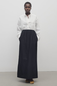 Minimal floor-length skirt in woven cotton and silk voile with gathered elastic waistband and slightly flared fit. More information - 69% Cotton, 31% Silk - Lined in 100% Silk - Made in Italy - Style: 9045W3838BLK