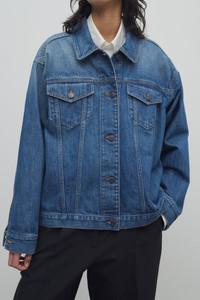 Classic denim jacket in garment treated denim with two front patch pockets, angled front seams, and front button placket. More information - 100% Cotton - Made in Italy - Style: 8873W3809WBE