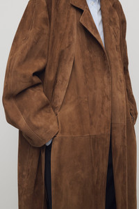 Calf-length coat in heavyweight lambskin suede with detachable notch collar, dolman sleeves, and side seam pockets. More information - 100% Lambskin Suede - Made in Italy - Style: 10518L643RSS