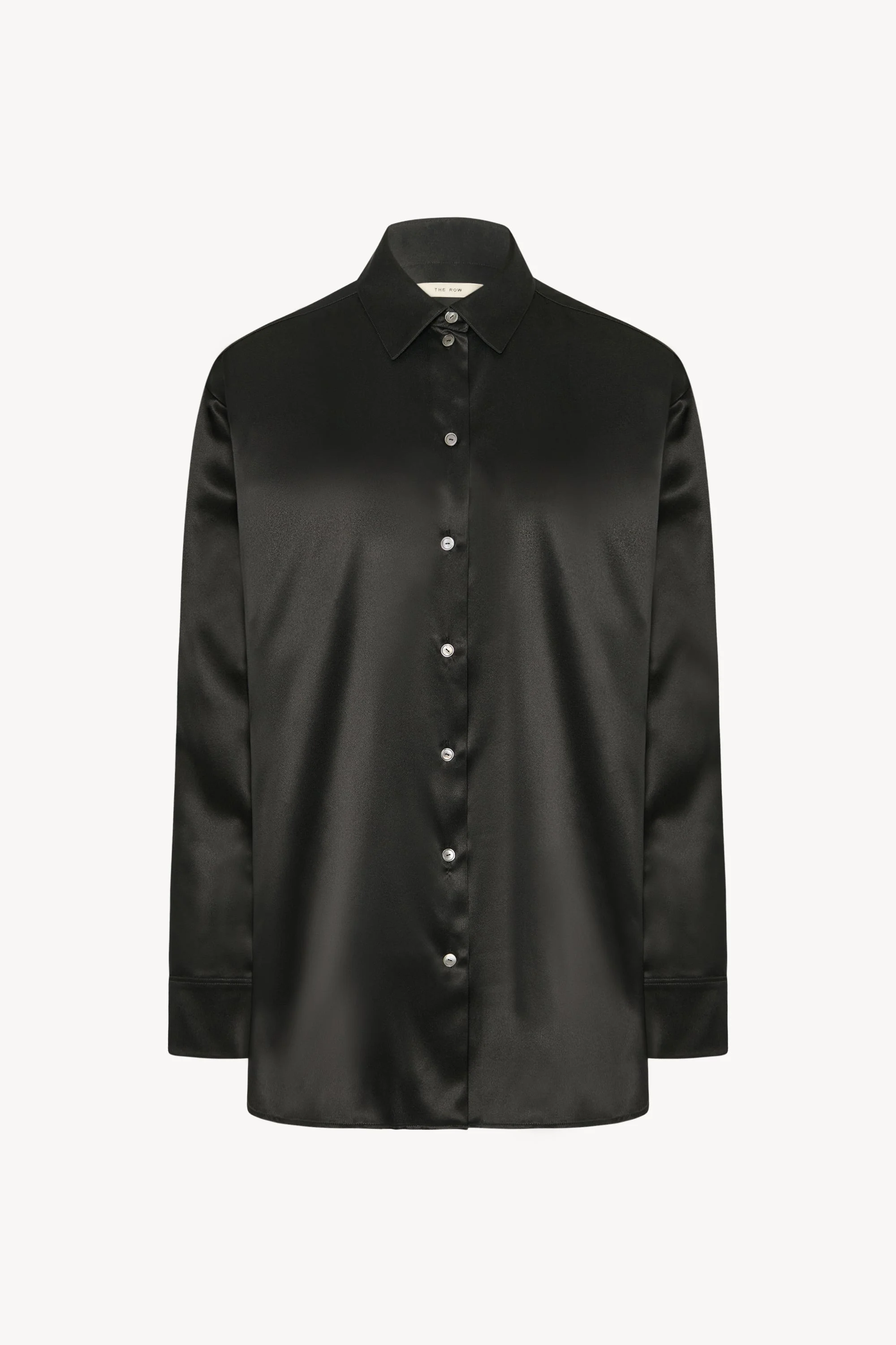Classic button-up shirt in lightweight silk satin with slim back yoke, straight hem, and exposed front placket with horn button closure. More information - 100% Silk - Made in Italy - Style: 5652W4074BLK