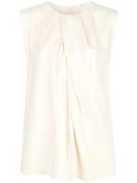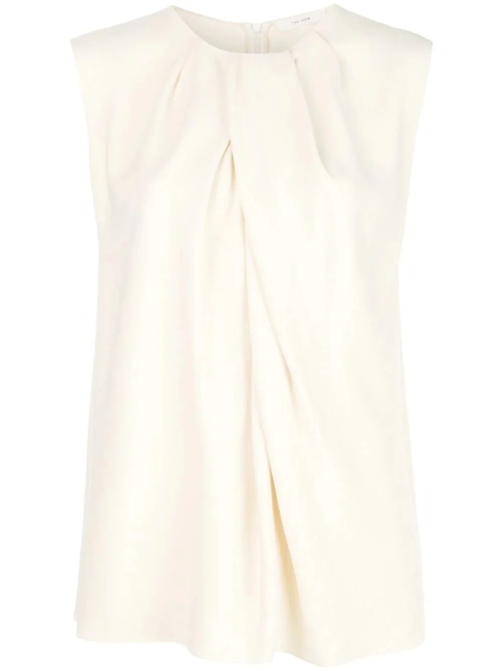 sleeveless flared blouse White sleeveless flared blouse from The Row featuring a flared style, a round neck and a sleeveless design. Made in United States Composition Viscose 64%, Acetate 33%, Elastane 3% SIZE & FIT Model measurements Height 5 ft 10 in(1.77 m) Bust/Chest 29.92 in(76 cm) Hips 35.03 in(89 cm) Waist 24.01 in(61 cm) Washing instructions Dry Clean Only
