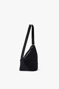 Curved crossbody bag in lightweight nylon with adjustable leather strap and zipper closure.More information - - 13.5 x 8 x 8.3 in. - - 56% Polyamide, 44% Cotton - - Made in Italy - - Style: W1304W256BLPL
