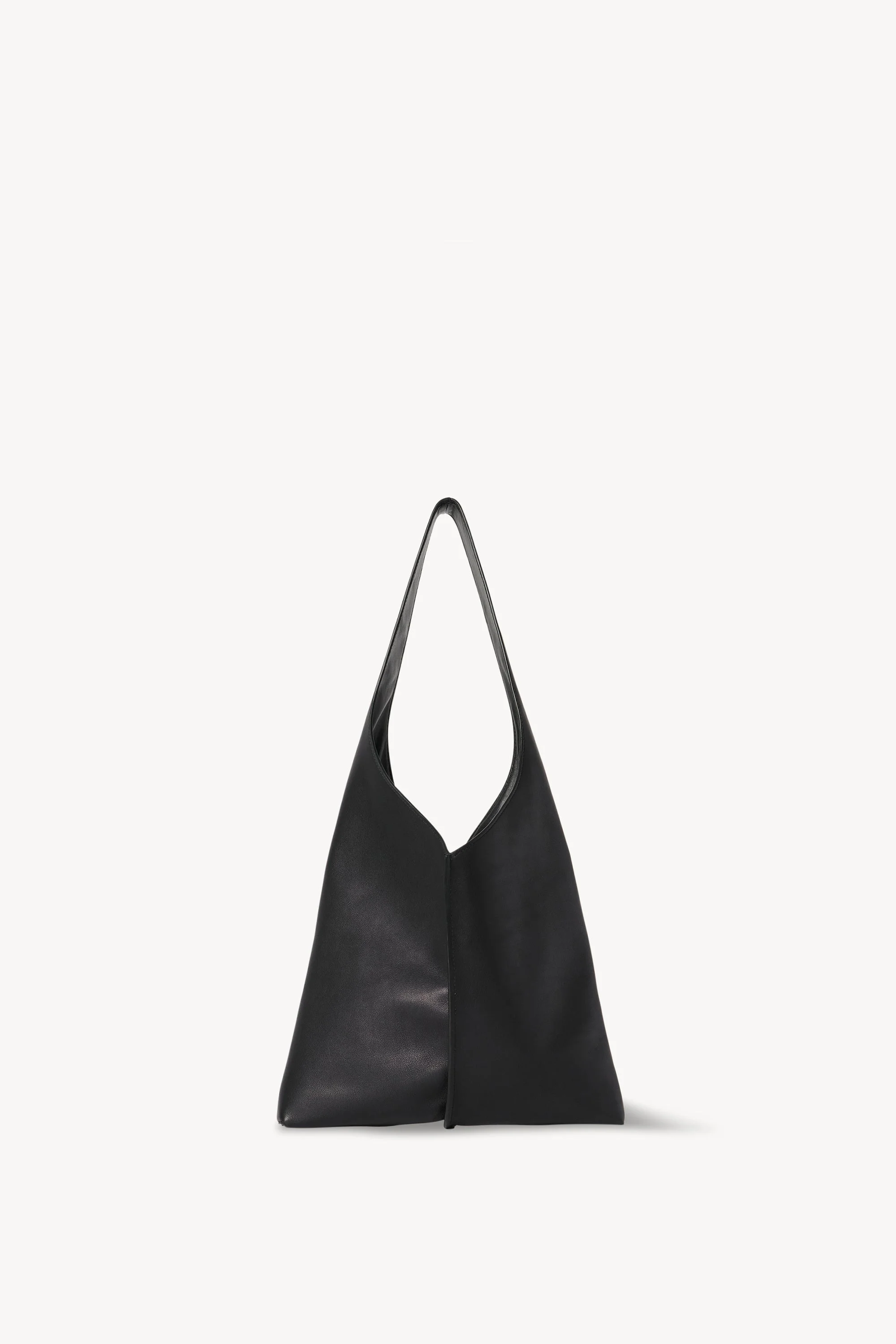 Unstructured handbag in polished saddle leather with draped handle, center seam detail, and detachable zipper pouch. More information - 100% Calfskin Leather - Lined in 100% Lambskin Leather - Made in Italy - Style: W1873L72BAS